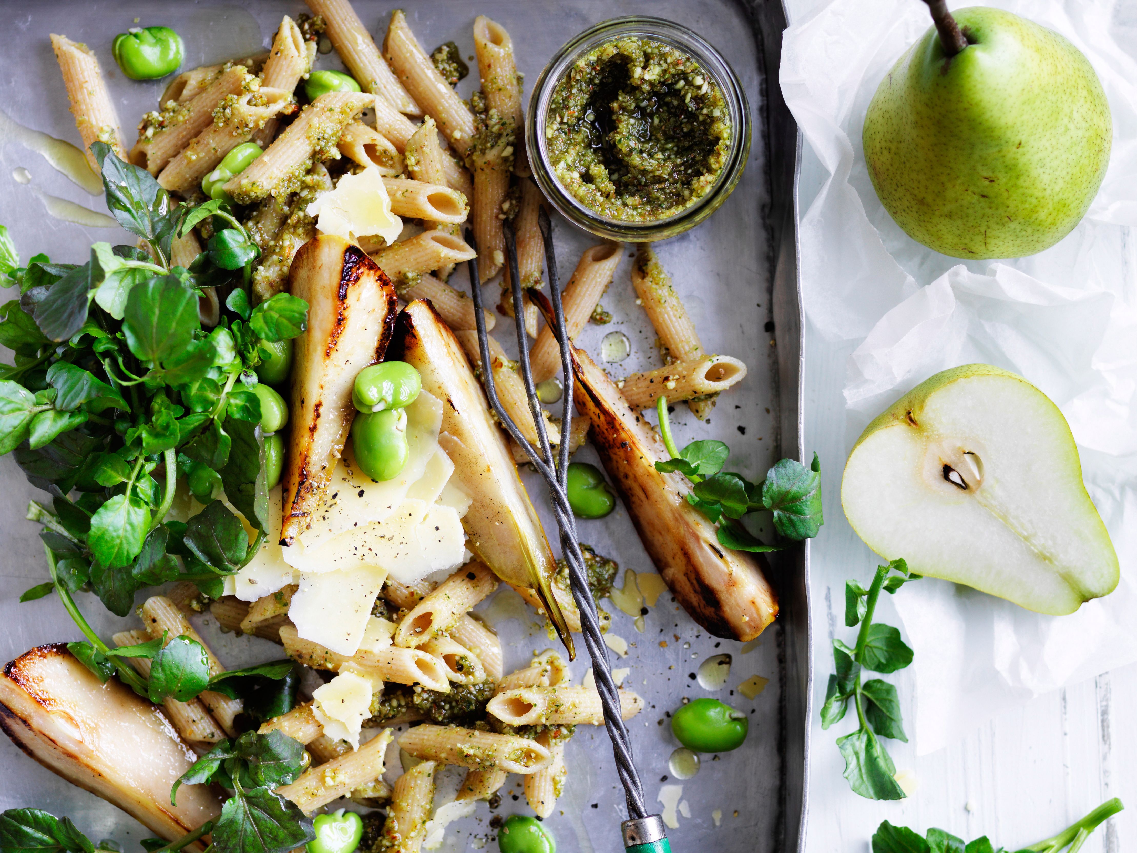 Pasta Mit Mandel Nuss Pesto Birnen Und Dicken Bohnen Rezept Eat Smarter